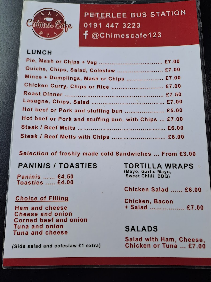 Welcome to Chimes Café, a delightful eatery nestled in Peterlee's bus station at 20 Yoden Way. Renowned for its homely vibe and affordability, this café serves an impressive menu that caters to all tastes.